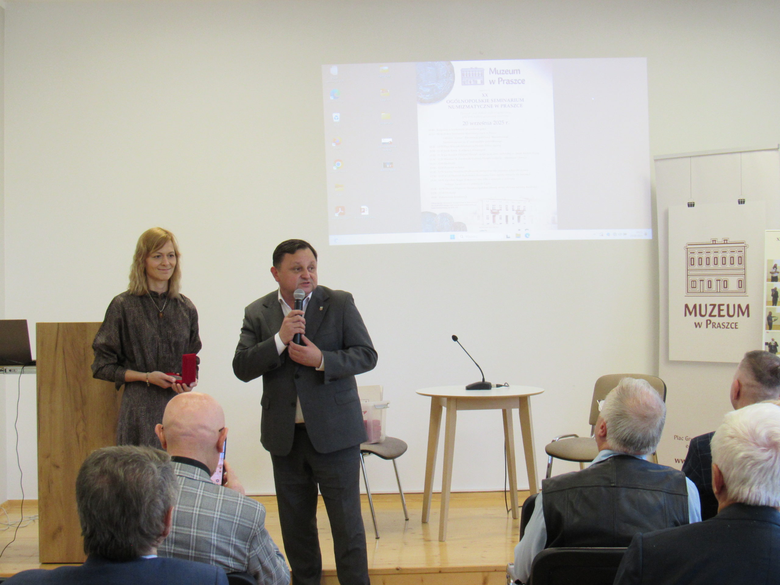 Upamiętnieniem wydarzenia jest również medal pamiątkowy- posrebrzony o średnicy 70 mm, na awersie upamiętniający to wydarzenie napis XX Ogólnopolskie Seminarium Numizmatyczne 2005-2025, zaś rewers zdobi siedziba naszego Muzeum, w otoku zaś napis łaciński w wolnym tłumaczeniu rozumiany jako Pieniądz to moje drugie ja, z którą to sentencją z pewnością utożsamić może się niejeden z naszych gości.