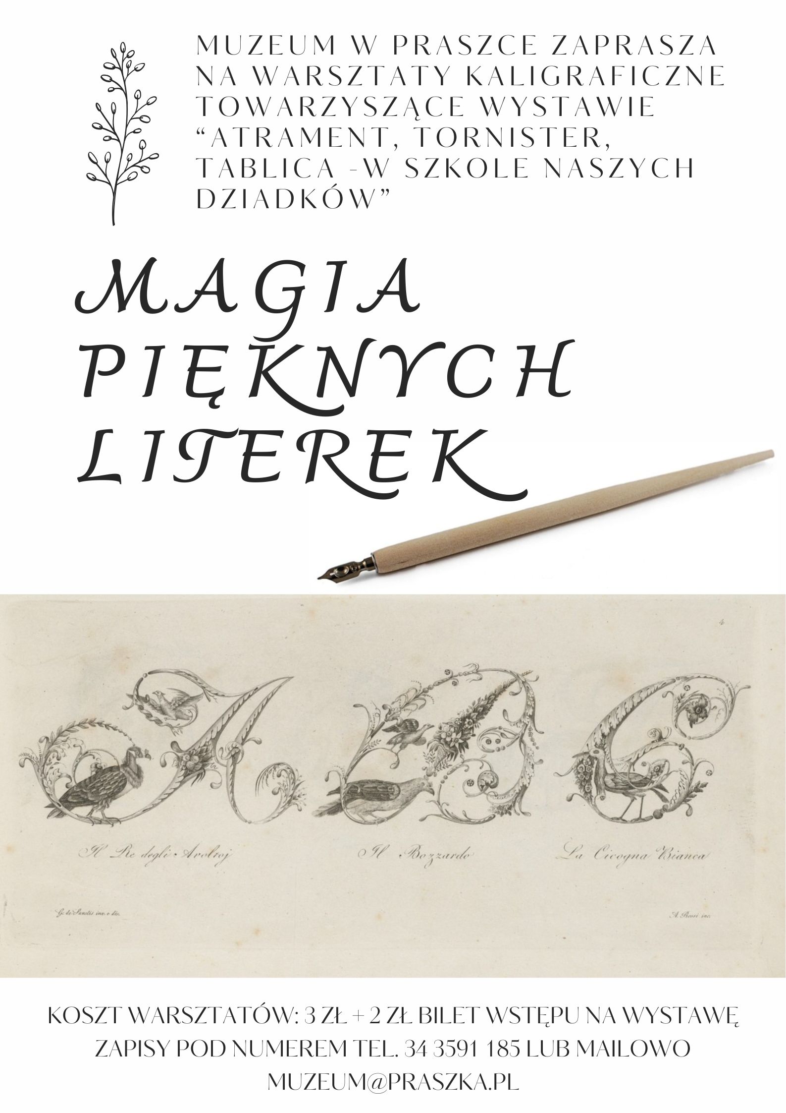 Muzeum w Praszce zaprasza na warsztaty kaligraficzne towarzyszące wystawie „Atrament, tornister, tablica – w szkole naszych dziadków”. Podczas zajęć uczniowie będą mieli okazję poćwiczyć sztukę pięknego pisania tworząc ozdobne swoje imię za pomocą tuszu i piórka.